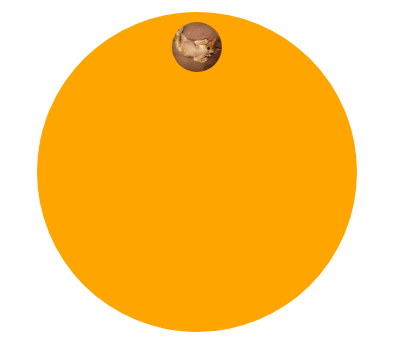| .path{ width: 300px; height: 300px; border-radius: 50%; background: orange; margin: 0 auto; padding: 10px; } .path img{ width: inherit; } .av{ margin: 0 auto; width: 50px; height: 50px; border-radius: 50%; overflow: hidden; } @keyframes spin { to {transform: rotate(1turn)} } .av{ animation: spin 3s infinite linear; transform-origin: center 150px; }